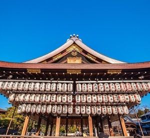 八坂神社香火鼎盛,深受商人喜爱。舞殿上无数的提灯,让它成为日本独特的神社建筑。来到神社中央的本殿前,有一座舞殿,是举行祭祀的舞台。
