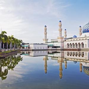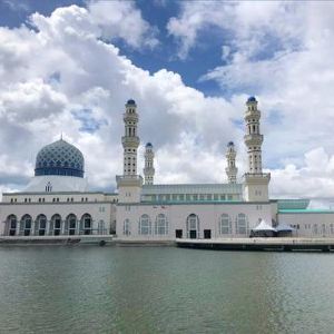 亚庇地标性建筑,建在水上的清真寺,蓝顶白墙加上水面上的倒影显得格外梦幻。进入清真寺要先到门口休息室穿长袍,女士要遮住头部,非常美丽壮观!