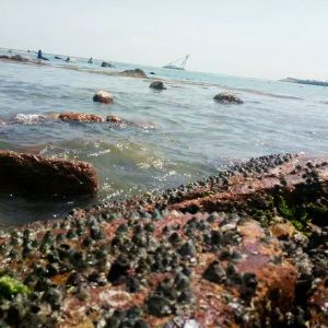 芦须城泳滩设施完善,绿树成荫,环境清幽,夏天海面设有浮台。