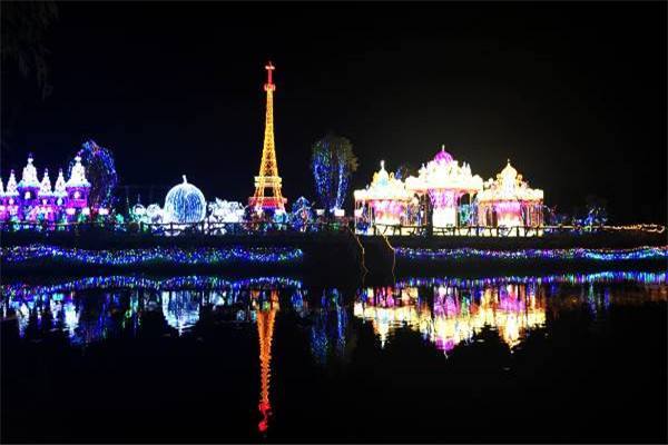 爱农湖景区项目众多,玩法多样。每年举办灯光艺术节,现场呈现50多组大型光影创意艺术灯组,点亮1699万盏缤纷多彩的LED灯株,与爱农湖湖面灯光交相辉映,形成光影与艺术的视觉盛宴和狂欢海洋。