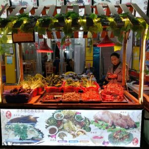 荔波美食街。这条街全是饭店跟烧烤,可以选的吃的东西不多,美食街小小的,十几分钟可以走完。吃鱼的当地人推荐吃刘一手,除了豆花娇嫩外鱼并不好吃。特色还有烤香猪,丝娃娃,包酱豆腐,潘奶冰粉等等。