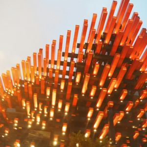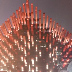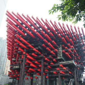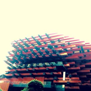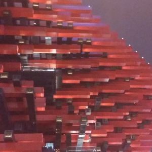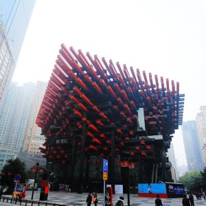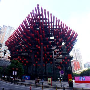 它的一面看似一根根红色、黑色的筷子层叠交错构成的大船,另一面则似一个个红色箱子的堆积,融合了古建筑的斗拱、穿斗等传统元素与现代设计。这就是在国泰大戏院的旧址上,建成于2013年的重庆国泰艺术中心,“箱子堆积”的一面是重庆美术馆,常年有各种美术、摄影展示,“筷子交错”的另一面则是国泰艺术中心,经常有话剧、音乐会等演出。这座建筑非常具有重庆吊脚楼的特色,美术馆位于它的第五、六楼,从前面...