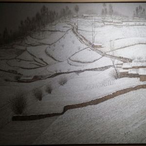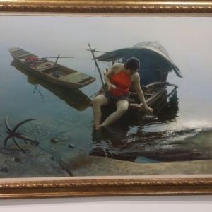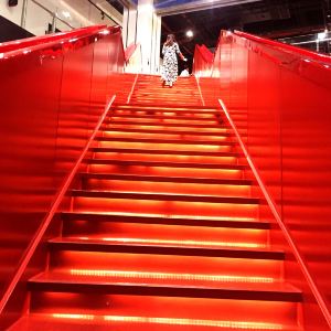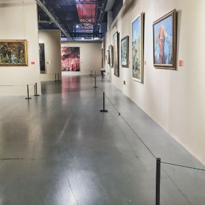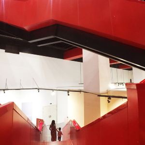 共有8200平方米。在展厅中间,一条转折的红色钢架楼梯与6楼展厅相连。爬上转折楼梯,在转折处往下看,立体广阔的空间效果,让人感觉进入了“天空之城”,要是摆上画作,会更有感觉,美术馆的空间感是一大亮点。