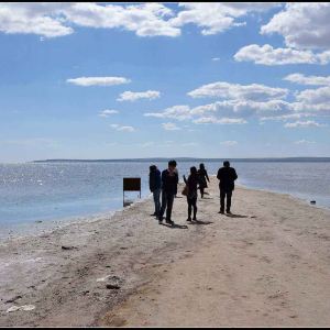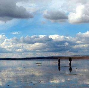 图兹湖非常非常非常大!司机车停在岸边,但是湖边没有水,走到有水的地方要走一公里这样,路上还是很多车论印,司机不肯开进去,我们只能走进去,走到有水的地方的时候乌云离我不远了。风景很美!