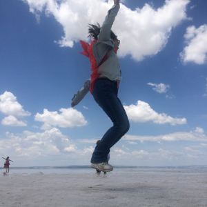 我们是当地的一家饭店老板带着去的,只有当地人才会找到对的入口,才能拍到有水的盐湖。没有茶卡盐湖那么美丽和镜面效果,但是的粉丝的湖面也很美。