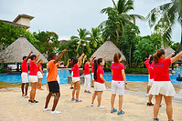 这是水上运动之后的疯狂带动跳,每天中午都会在泳池边上进行。