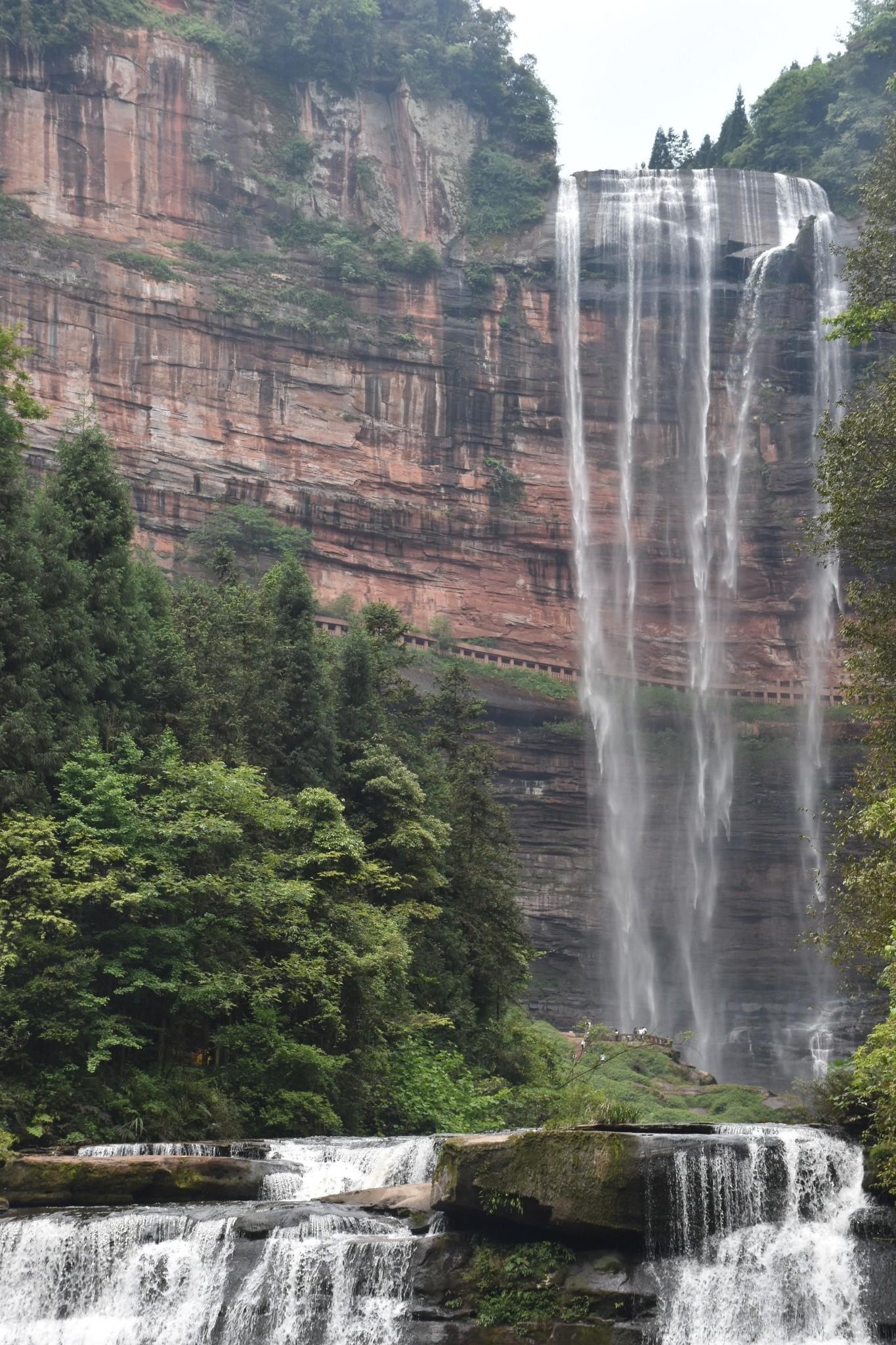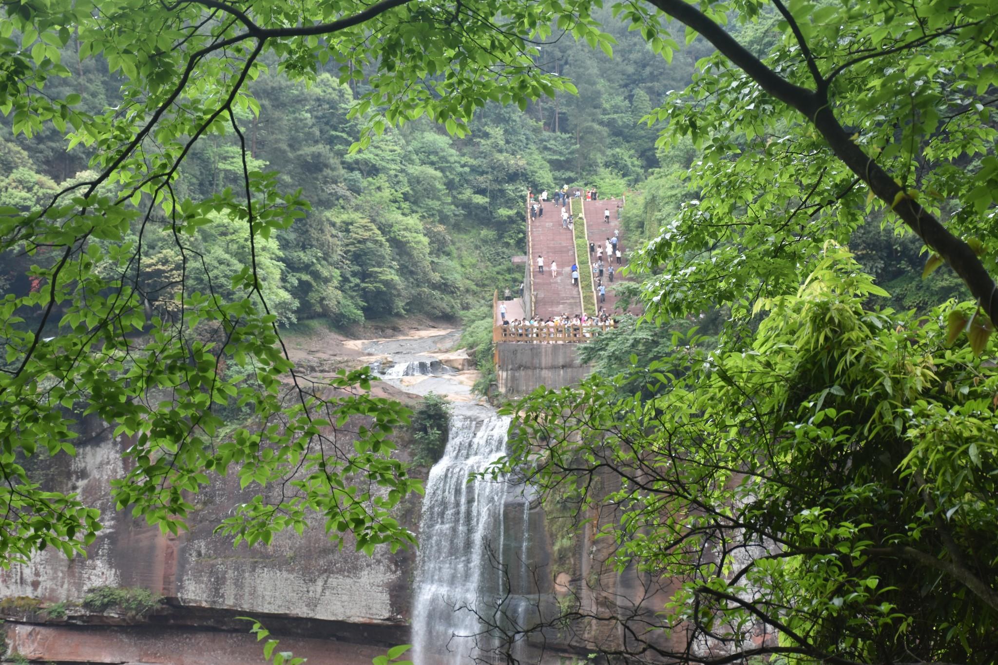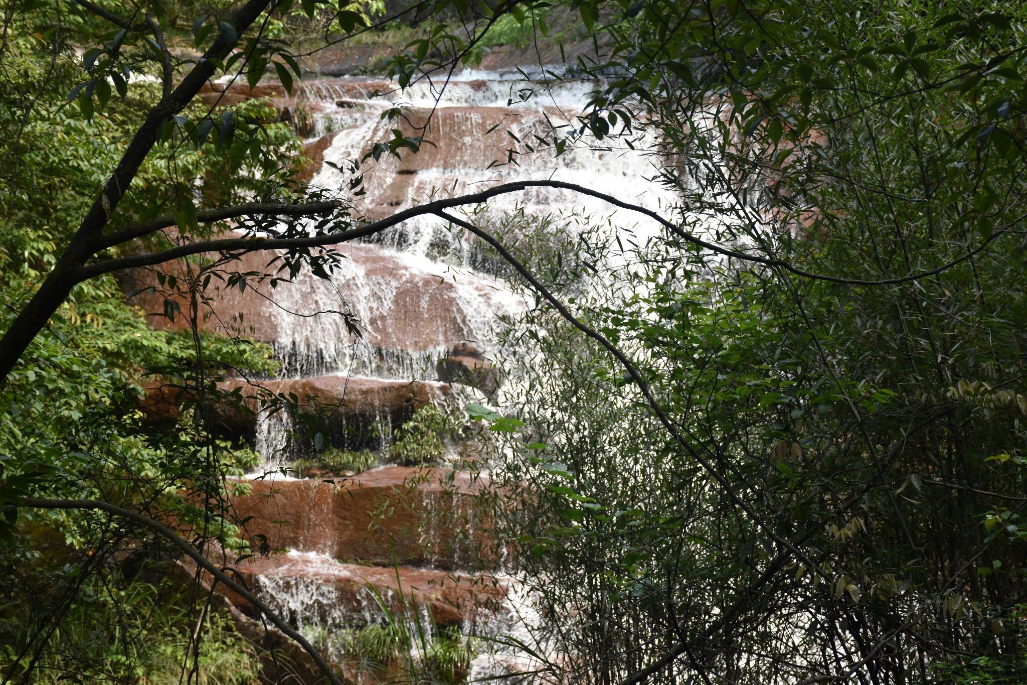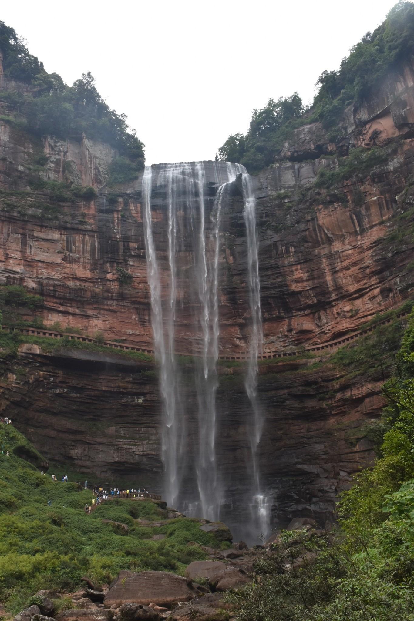 大风暴 走完栈道,就依稀听见瀑布水流声了。