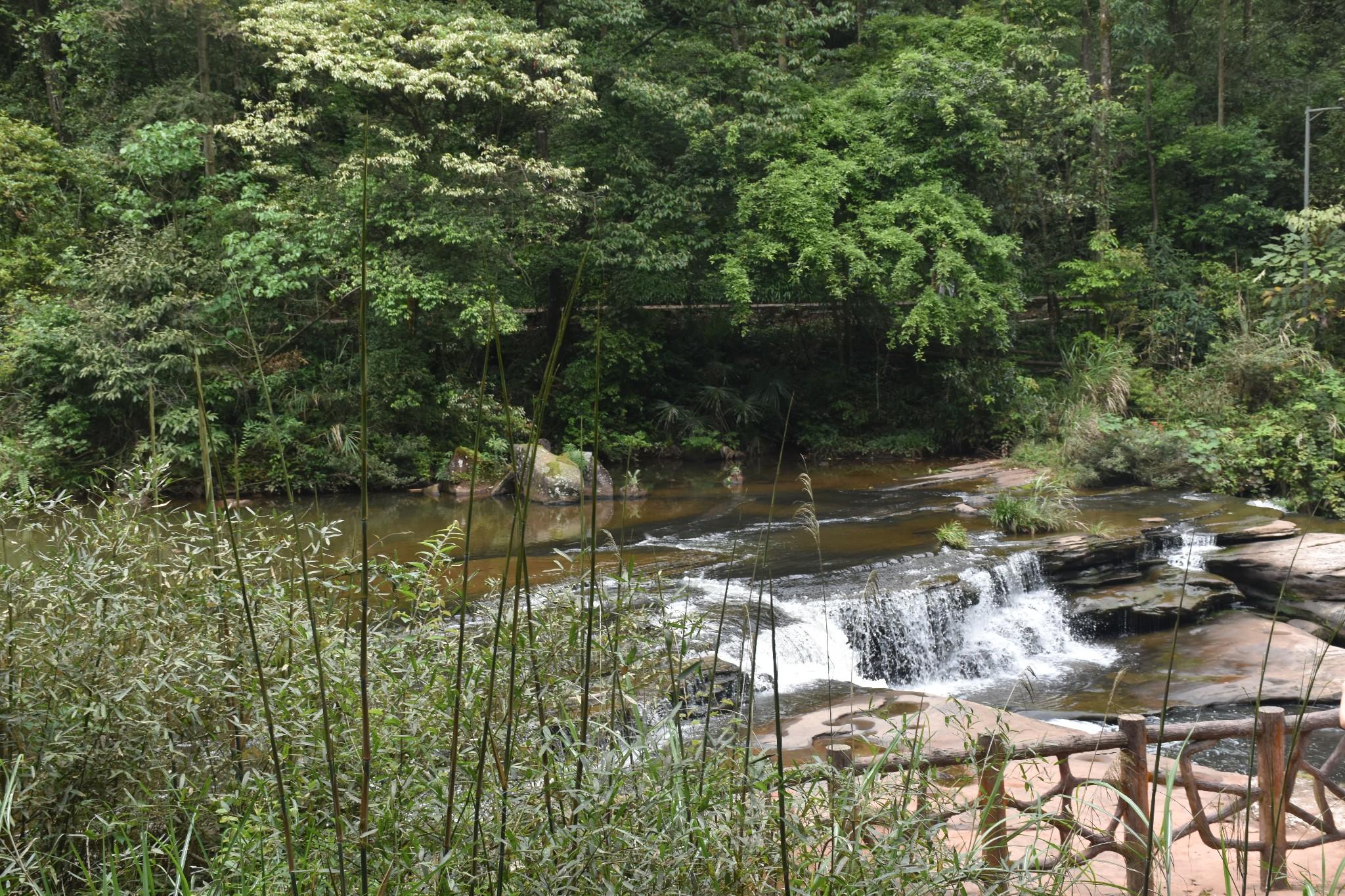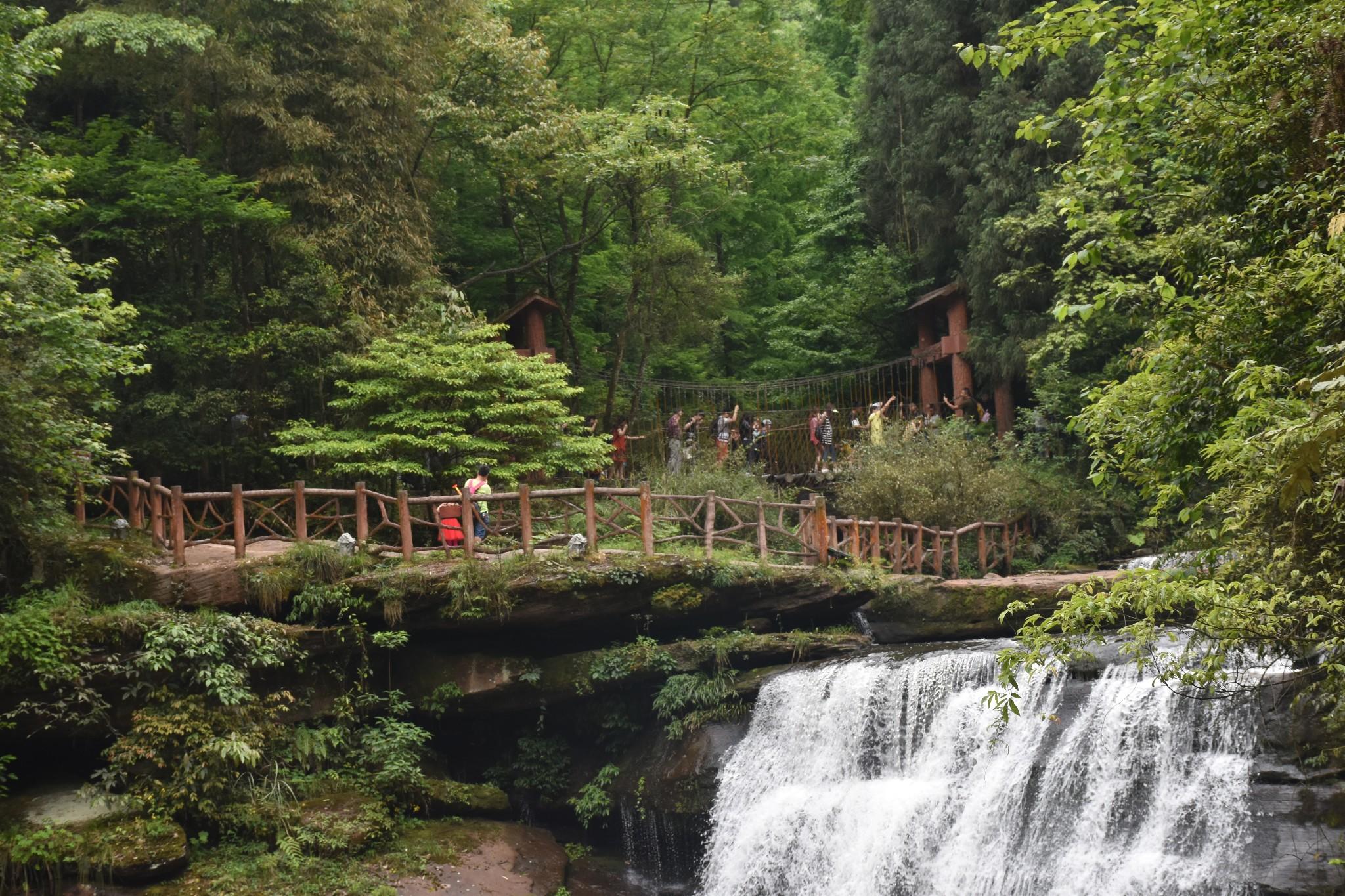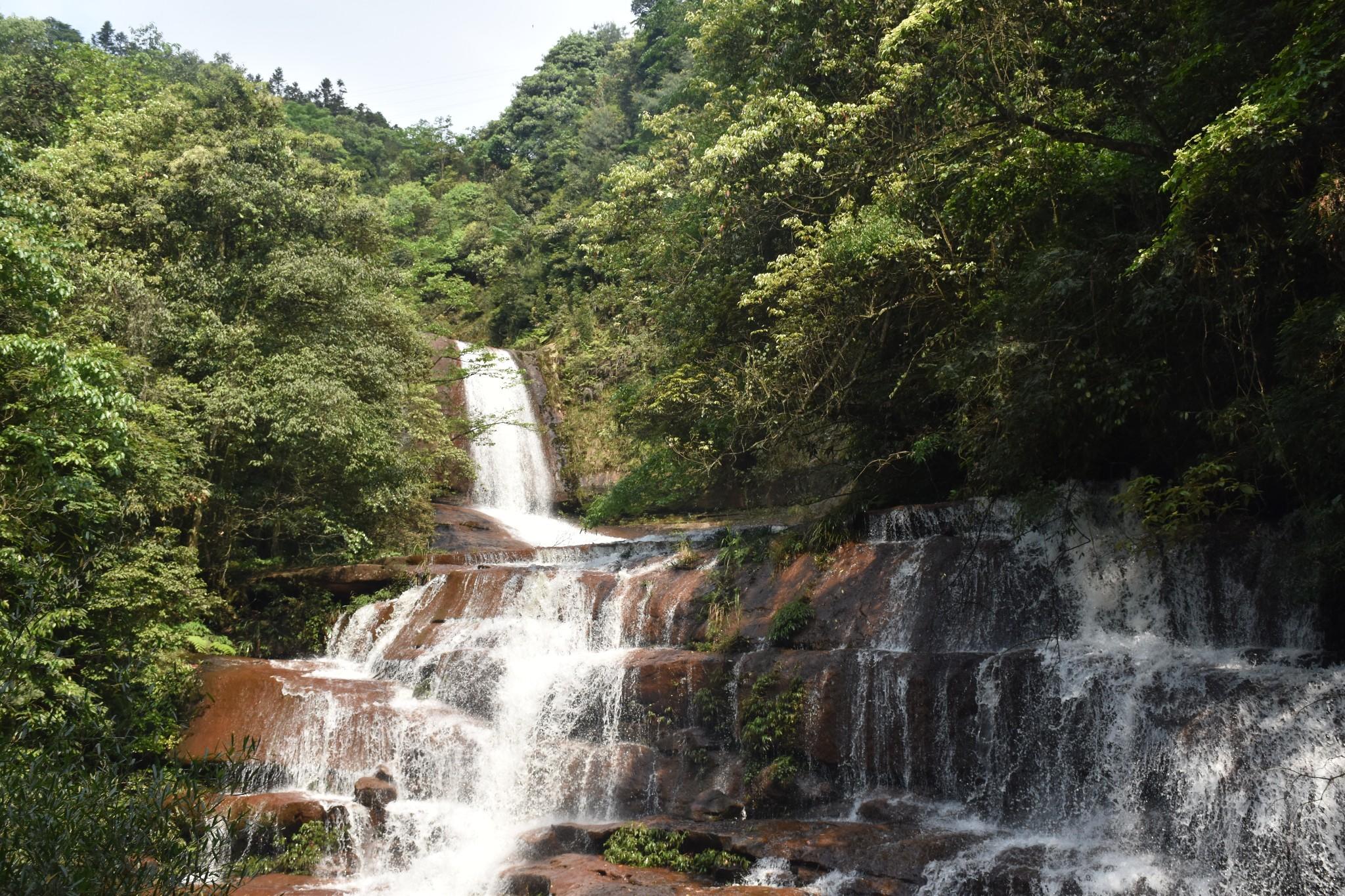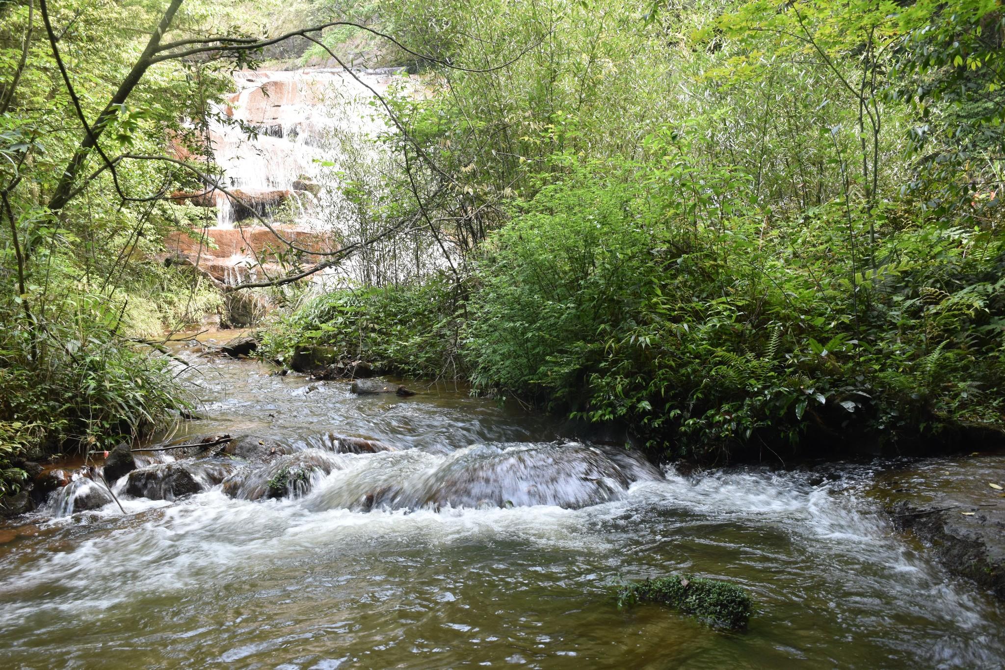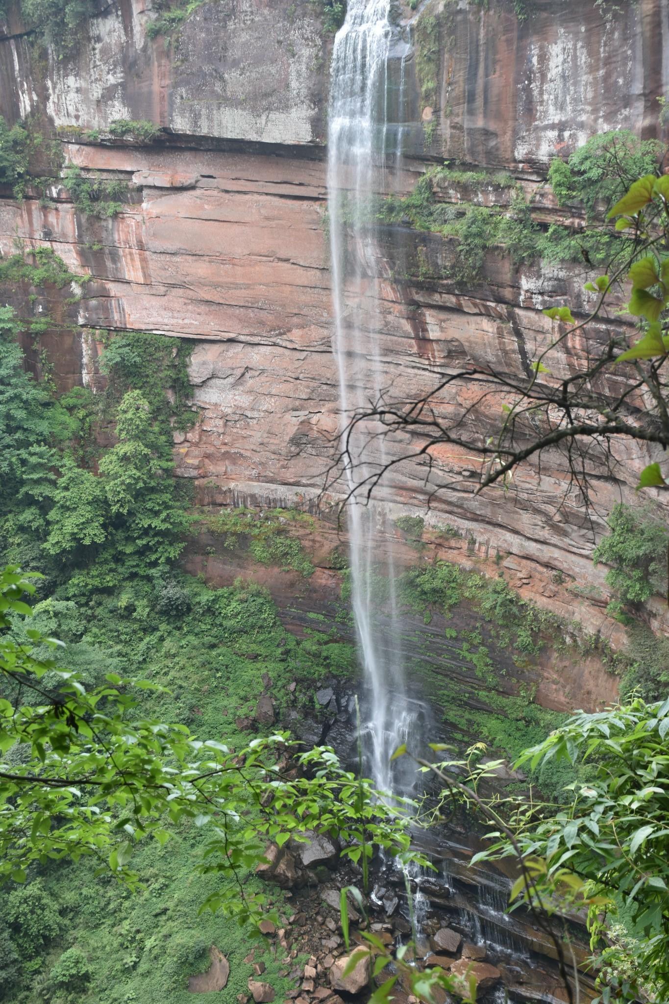 大风暴 走完栈道,就依稀听见瀑布水流声了。