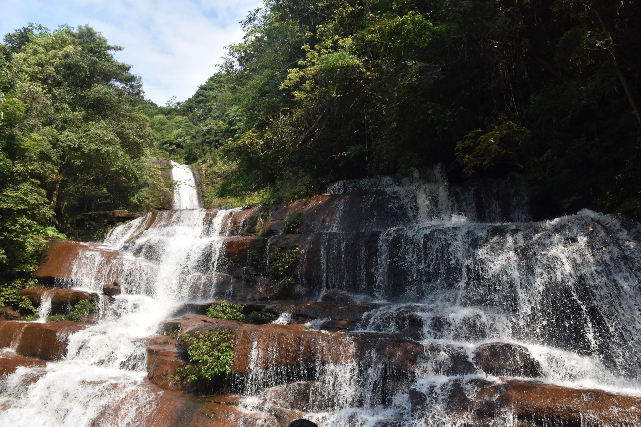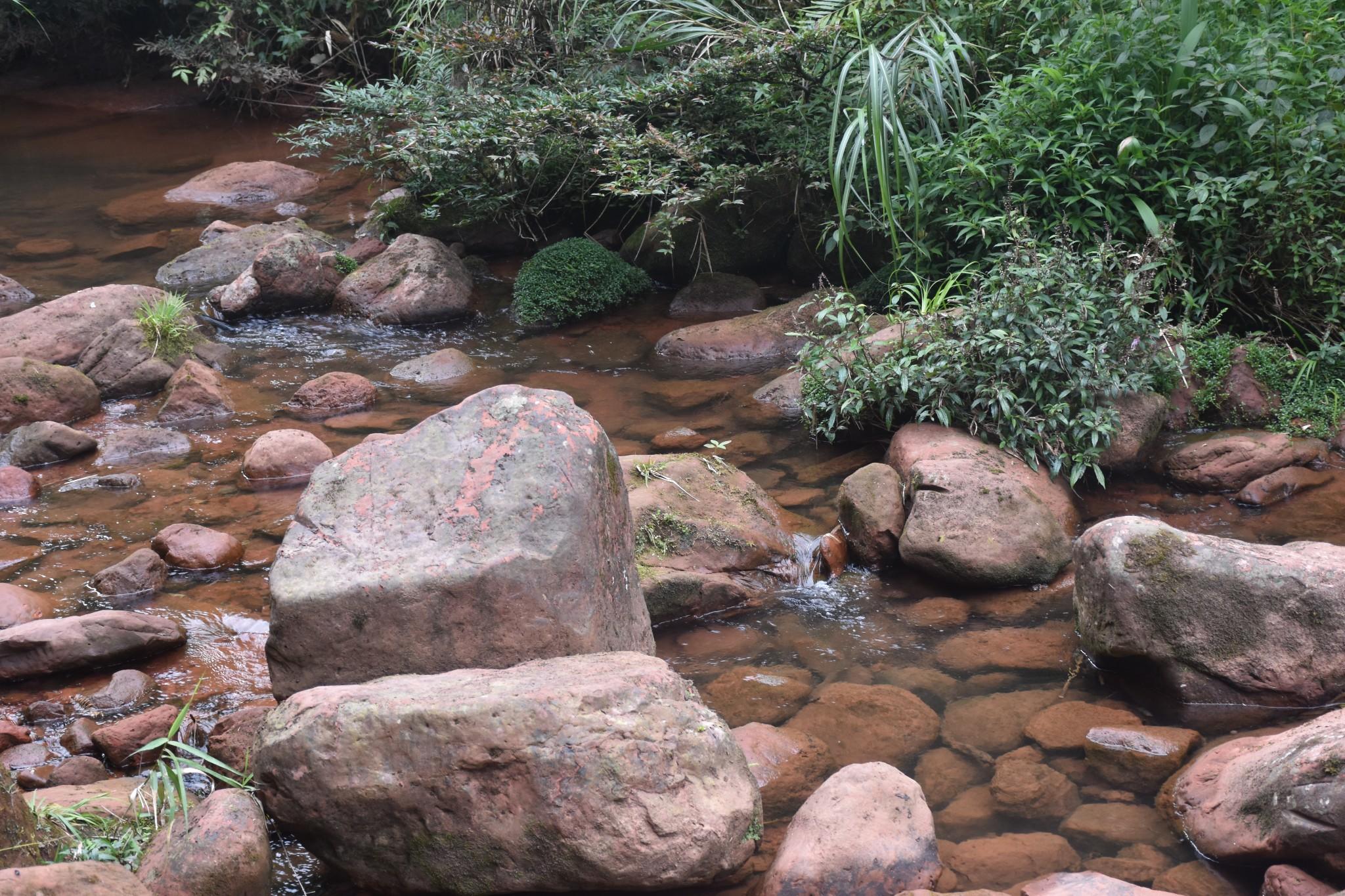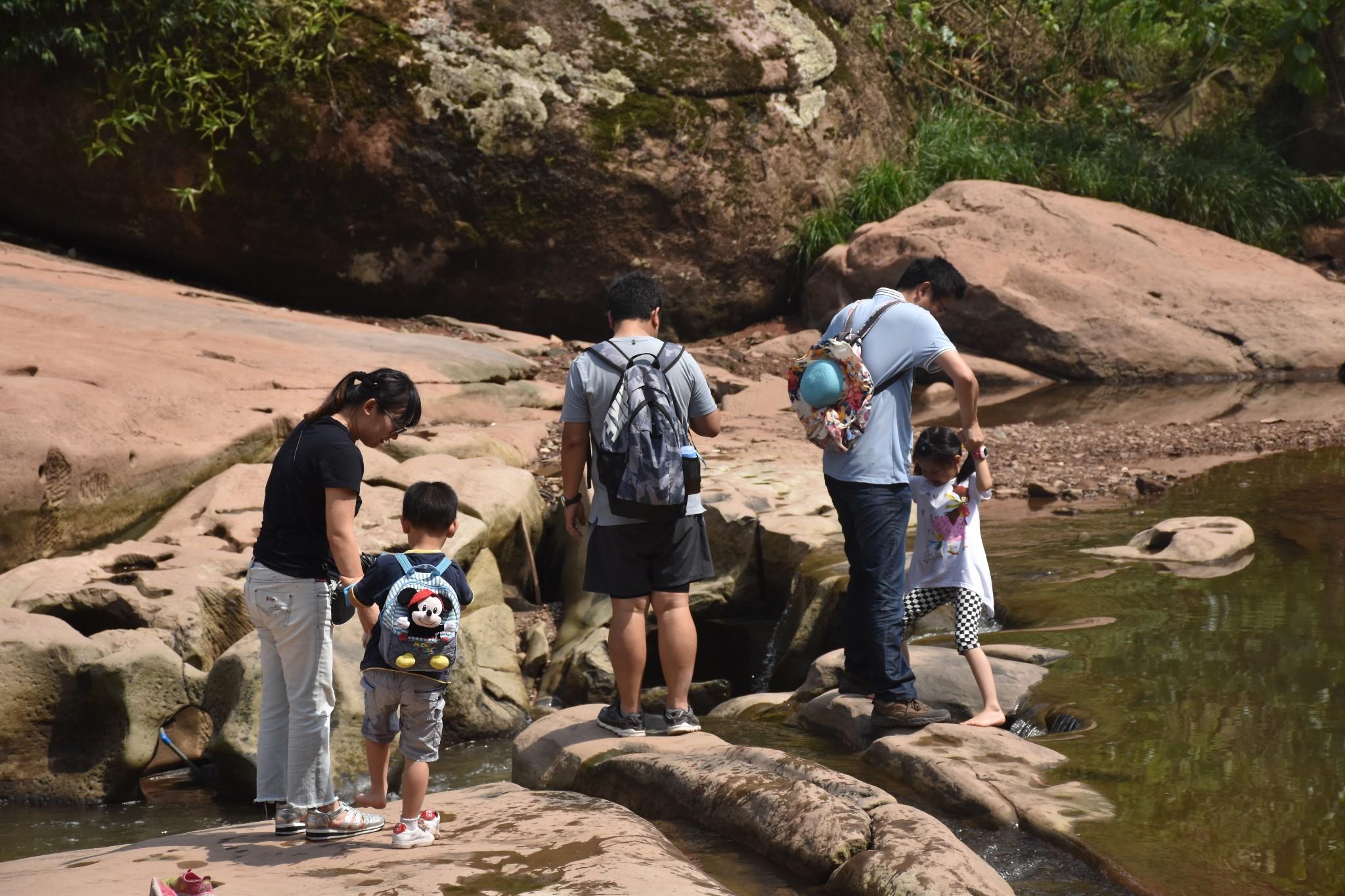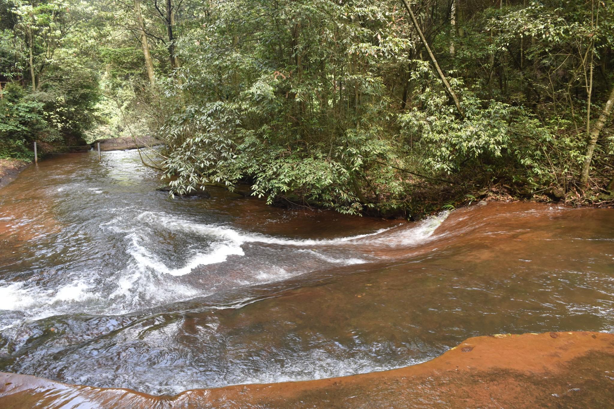 大风暴 走完栈道,就依稀听见瀑布水流声了。
