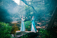 一步一景的森林峡谷,本来就给游人无比静谧的感觉,在安静之中又透露出些许神秘。在这种独特的气氛下,着一身古风的服饰,可谓是再合适不过了。仙女下凡的景象,就是如此真实地展现在了眼前。